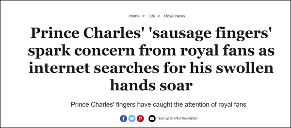 チャールズ新国王はSNS上でソーセージのようなむくみがある指がピックアップされており、深刻な病気ではないかとイギリス国内で話題になっています。