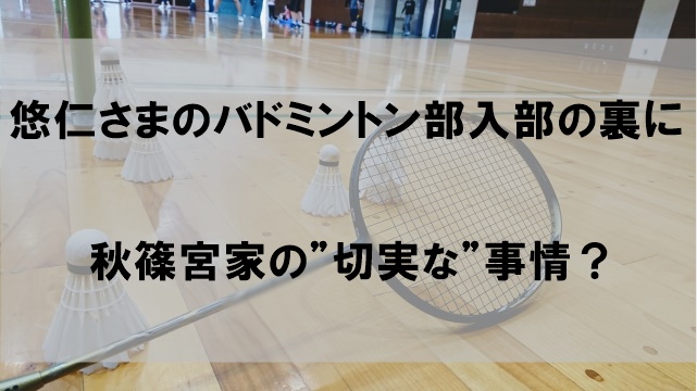 以上のことを踏まえると、悠仁さまのバドミントン部入部は秋篠宮家全体の”切実な”事情が絡んでいる可能性を指摘することができます。
